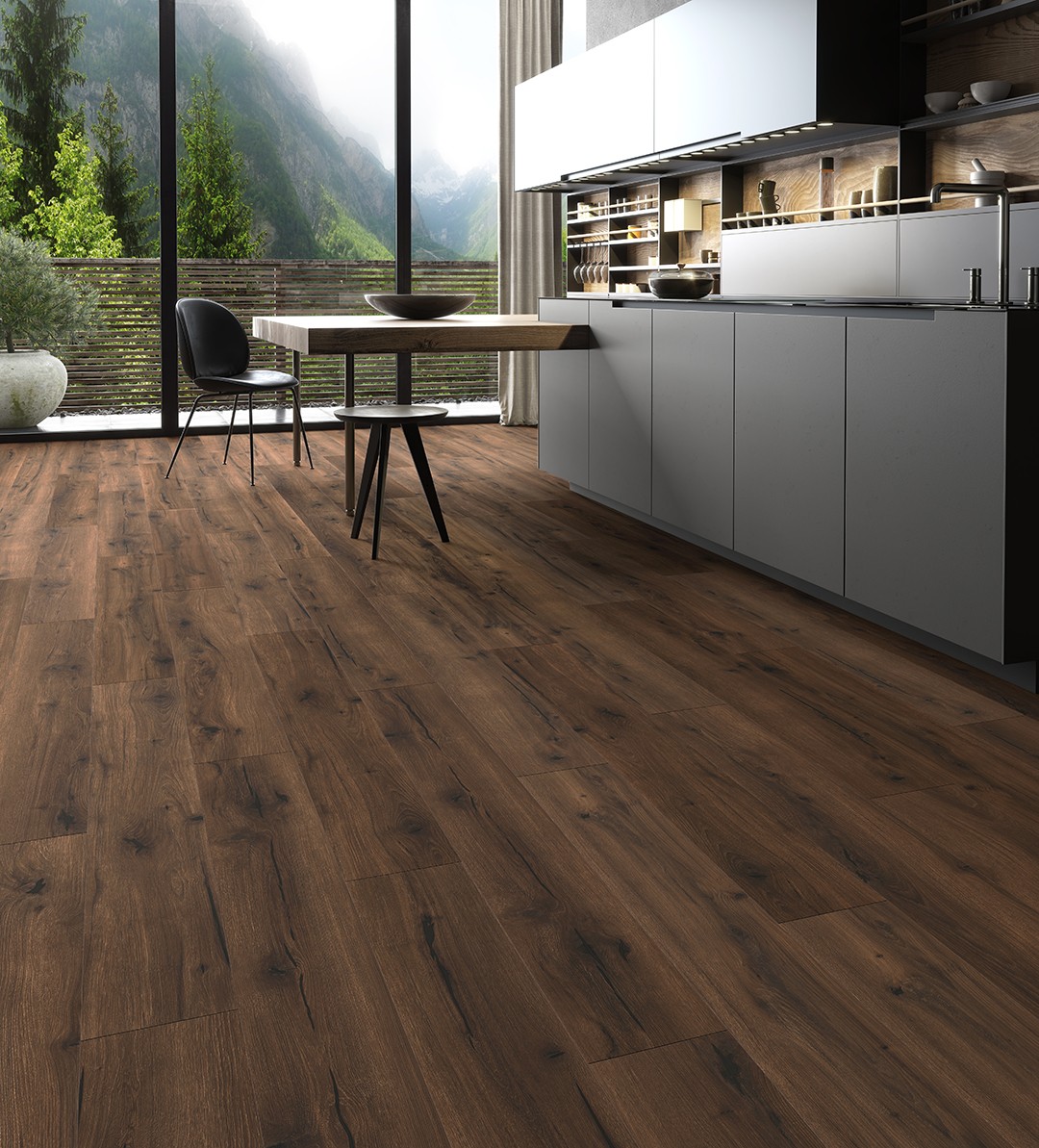 Oceana is our first ever laminate with a manufacturer's guarantee to be waterproof for up to seven days. The collection is available in a selection of gorgeous oak-effect planks for that real wood look without the hassle. Oceana Moraine is a rich dark brown oak laminate that brings depth and warmth to any space.