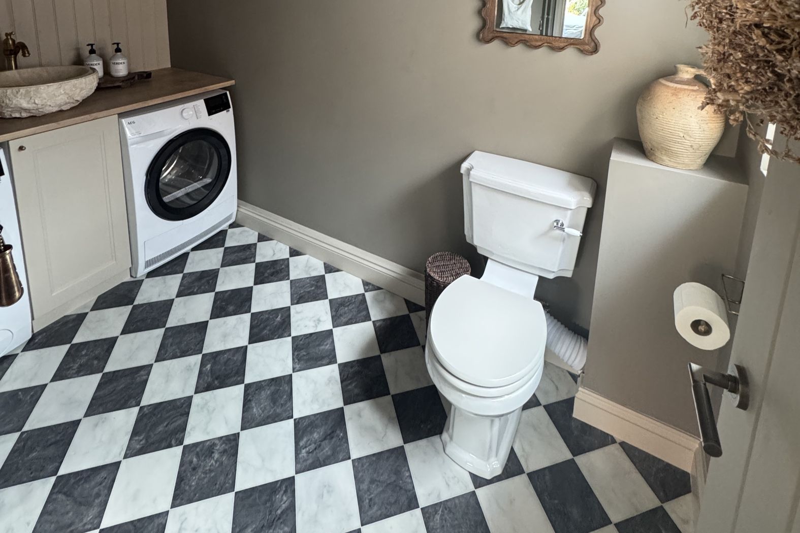 If you’re looking for low-cost flooring for your utility room, vinyl flooring has our vote. It’s also comfortable underfoot and it’s the toughest flooring when it comes to withstanding moisture and lots of footsteps. Vinyl also comes in a huge variety of different designs like stone-effect or wood-effect flooring. If you want to recreate utility room tile ideas on a budget, take a look at our Moroccan tile patterned vinyl or Victorian tile vinyl – perfect for giving your utility room a little pizzazz. Why can’t your utility room be fun as well as functional?