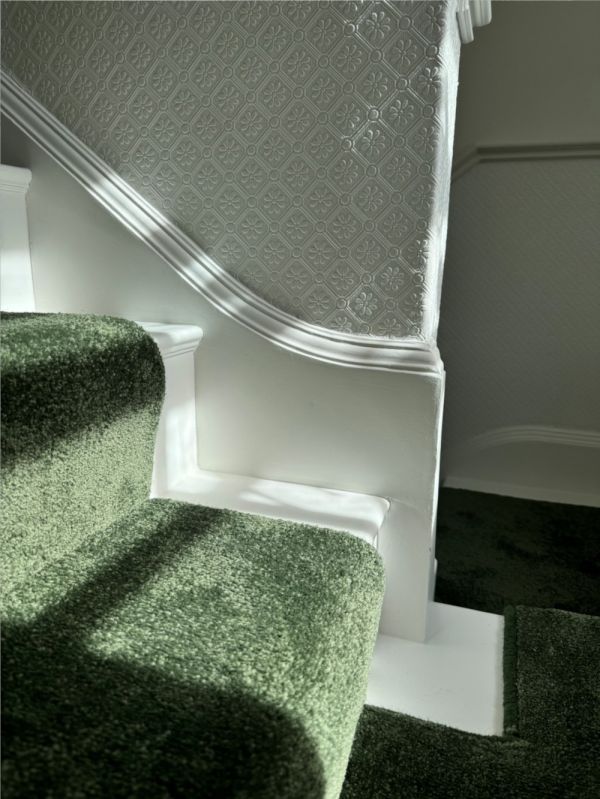 Followers of @beetrootandblack won't be surprised that Rachael chose a gorgeous but unusual dark green carpet - our Oxwich twist carpet in Forest. "It raised a few eyebrows... but if I didn’t go green, I would have regretted it."