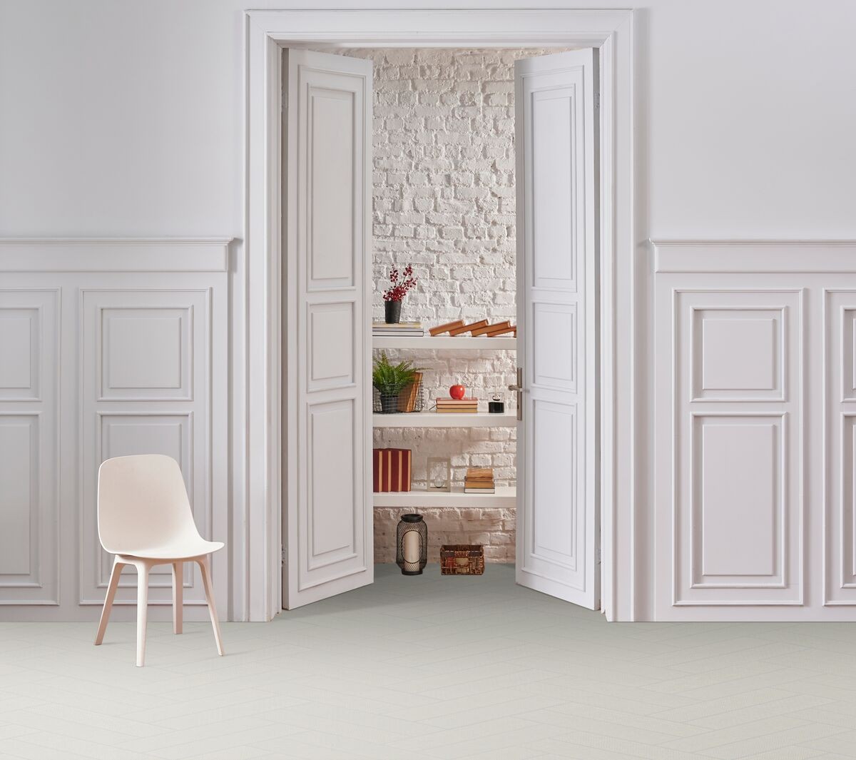 Grande by name, grand by nature. This vinyl flooring collection comes in a variety of stunning designs, but it's also got one of the toughest wear layers on the market. Easy to clean as well as slip and water resistant, Grande is suitable for any room and can stand up to the demands of everyday life – just mop and go! With its dense felt backing, it’s super comfortable underfoot. Grande Stora is a unique cream double herringbone vinyl with silver grouting and a silver patterned surface that disappears when it catches the light, perfect for a kitchen or bathroom.